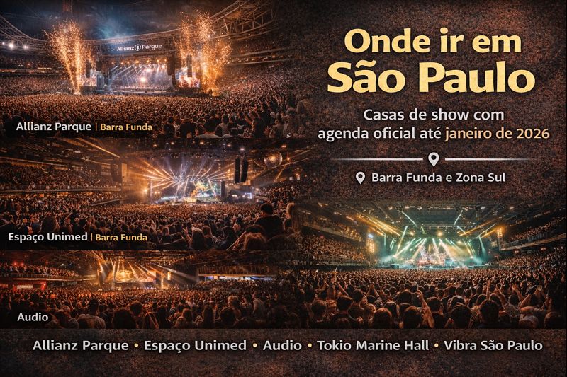São Paulo concentra alguns dos maiores palcos de shows do país, com programação contínua de artistas nacionais e internacionais. Para quem busca onde ir para ver shows em São Paulo, esta matéria reúne casas de show e arenas com agenda oficial já divulgada, incluindo datas previstas para janeiro de 2026, em regiões estratégicas da cidade.