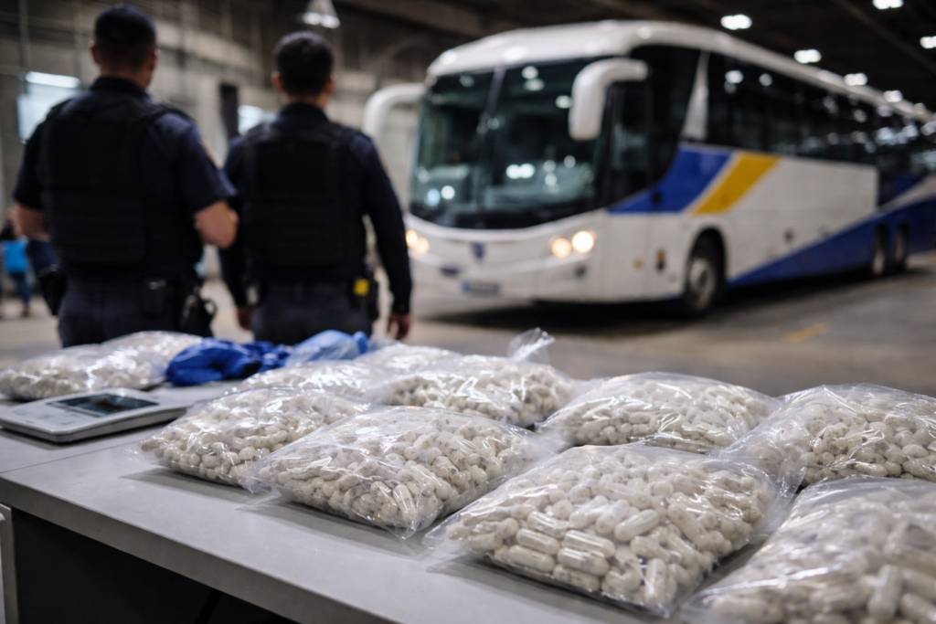 Durante a fiscalização, os policiais encontraram aproximadamente 8 quilos de cocaína distribuídos em cápsulas.