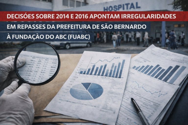 Decisões do Tribunal de Contas do Estado de São Paulo (TCE-SP) indicam a manutenção de irregularidades em repasses realizados pela Prefeitura de São Bernardo do Campo à Fundação do ABC (FUABC) em diferentes exercícios, com determinações de devolução de recursos públicos.